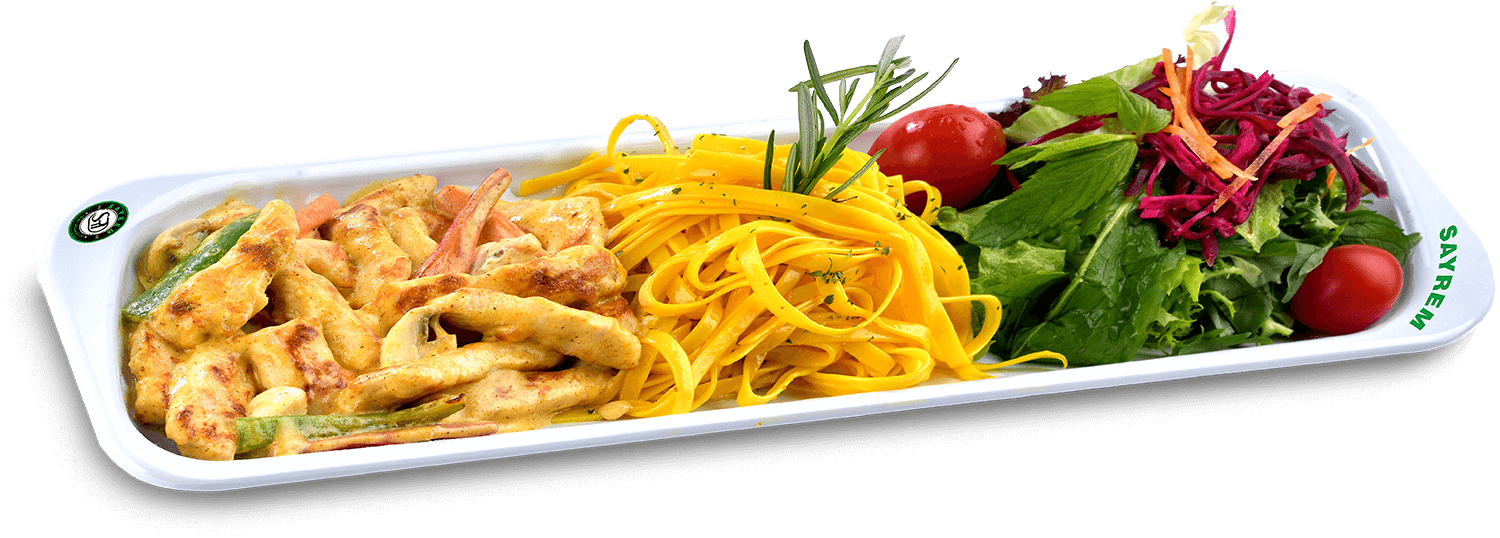 Tavuk Göğsü, Köri, Krema, Makarna ve Salata