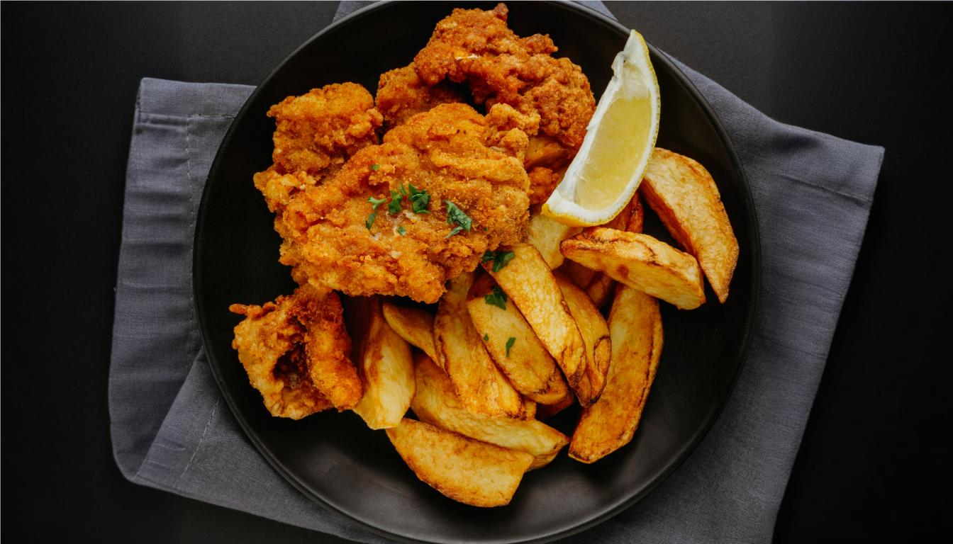 Paneli Tavuk Parçaları , Patates Kızartması , Salata , Pilav , Rus salatası